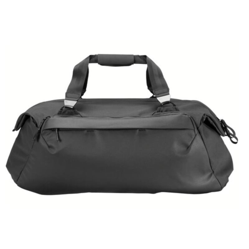 ExtrasThe Peak Design 50L Travel Duffel, made from 100% recycled 600D nylon canvas with a waterproof 900D bottom, features an oversized #10 weatherproof zipper for wide and easy access. It offers versatile carrying options with padded hand straps that have magnetic clasps and can be reconfigured as backpack straps, along with a shoulder strap for cross-body or over-the-shoulder use. For storage, the duffel includes two internal pockets and four external pockets. |